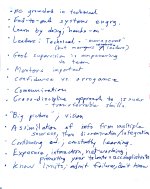 Ed Hoffman asked Masters Forum 16 participants, “How do you learn?” Participants separated into nine groups to discuss the various ways they learn as individuals and teams, then captured those myriad ways on white boards. Many overarching common themes and approaches surfaced from the different groups, and the visual representations also demonstrated the different ways we assimilate and distribute information, from bulleted lists to creative artwork. Images from the group discussions are available below.